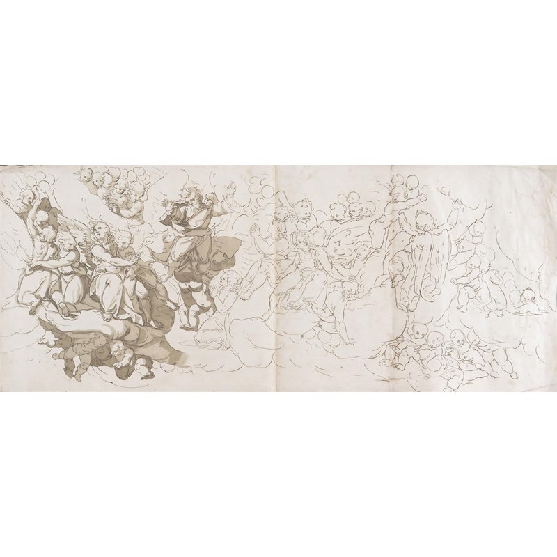 Follower of Michel Corneille II The Ascension Pen and ink and brown washes