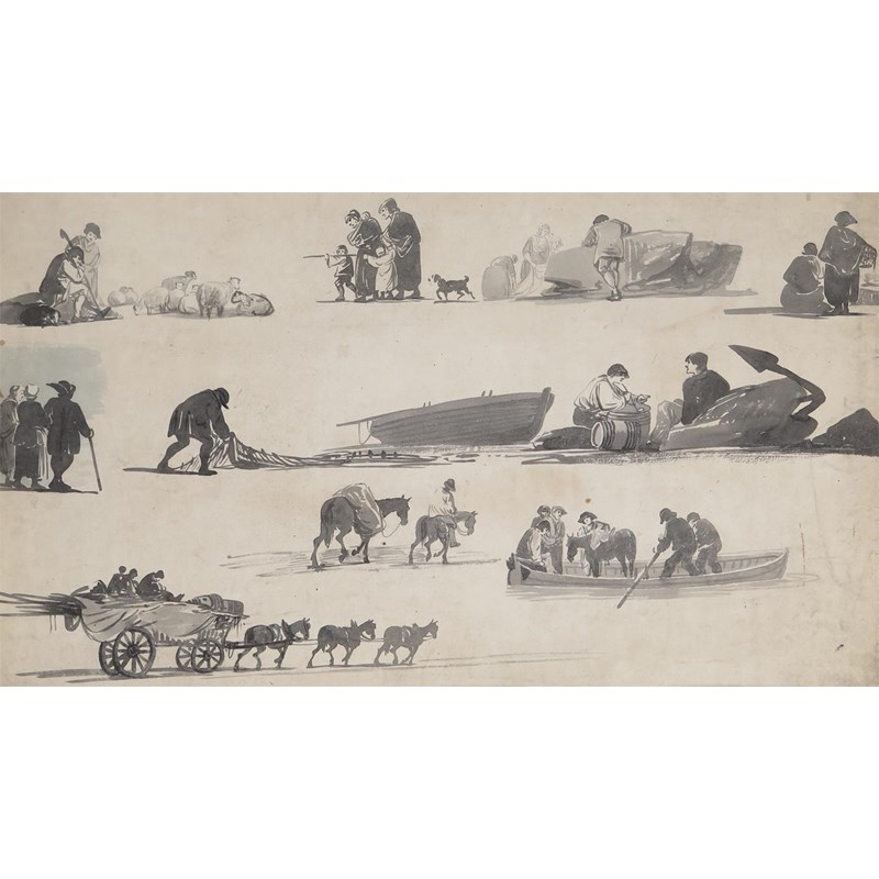 Figure studies of fishermen, labourers and others