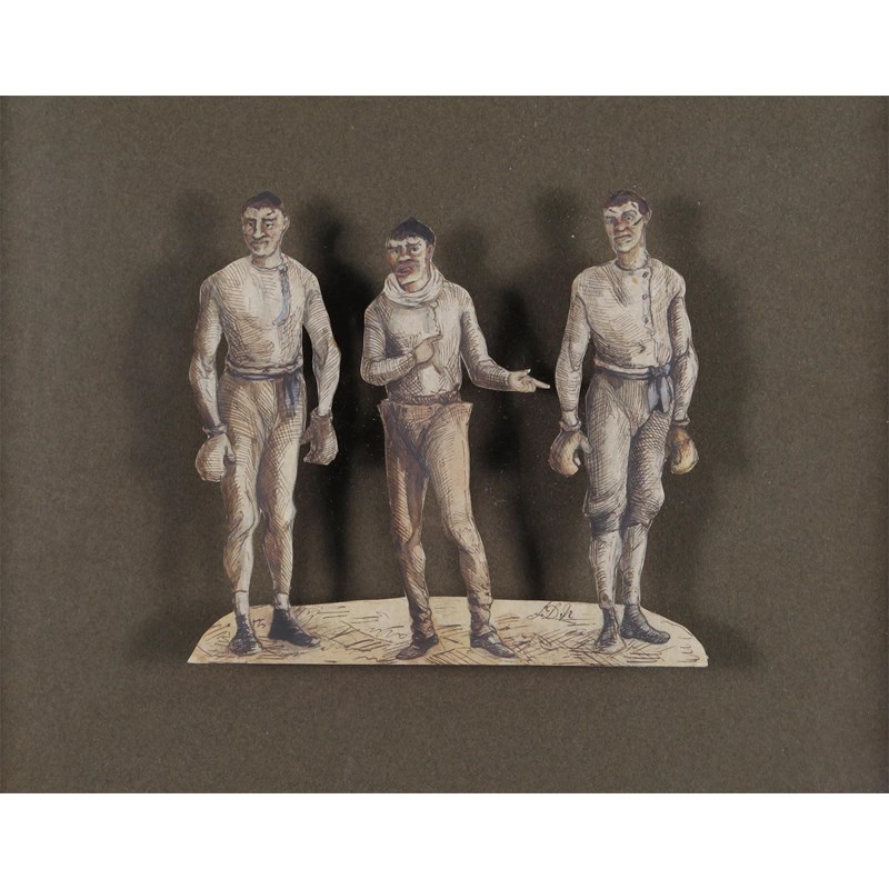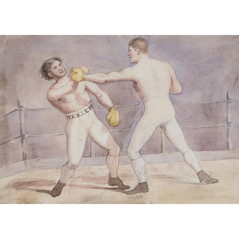 With two cutout watercolours of boxing matches by J.D. Nicholson, c.1860 (3)