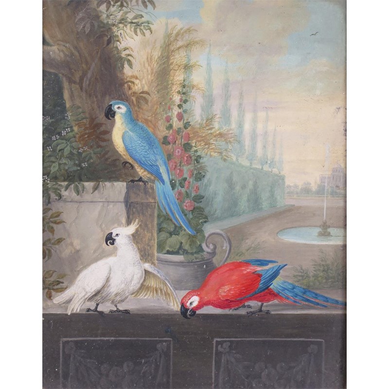 Follower of Jacob Bogdani Exotic birds in a picturesque park Gouache 15.75 x 12.5cm; 6 x 5in With...