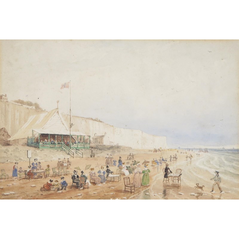 English School 19th Century A busy beach scene by white cliffs Watercolour 15 x 22.5cm; 6 x 9in
