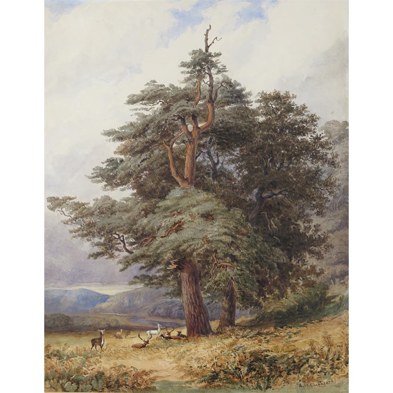 Lewis B. Shepherd (Exh. 1844-1975) Pine tree with a group of deer Signed Watercolour 59 x 47cm;...