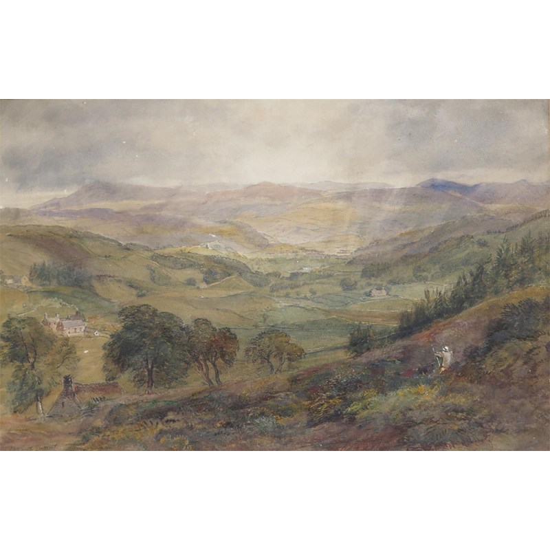 David Cox Jnr. (1809-1885) Solitary artist painting in a landscape Signed Watercolour over black...