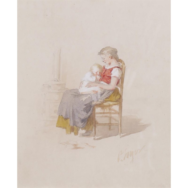 Paul Constant Soyer (French 1823-1903) Looking after baby Signed Watercolour on pale buff paper...