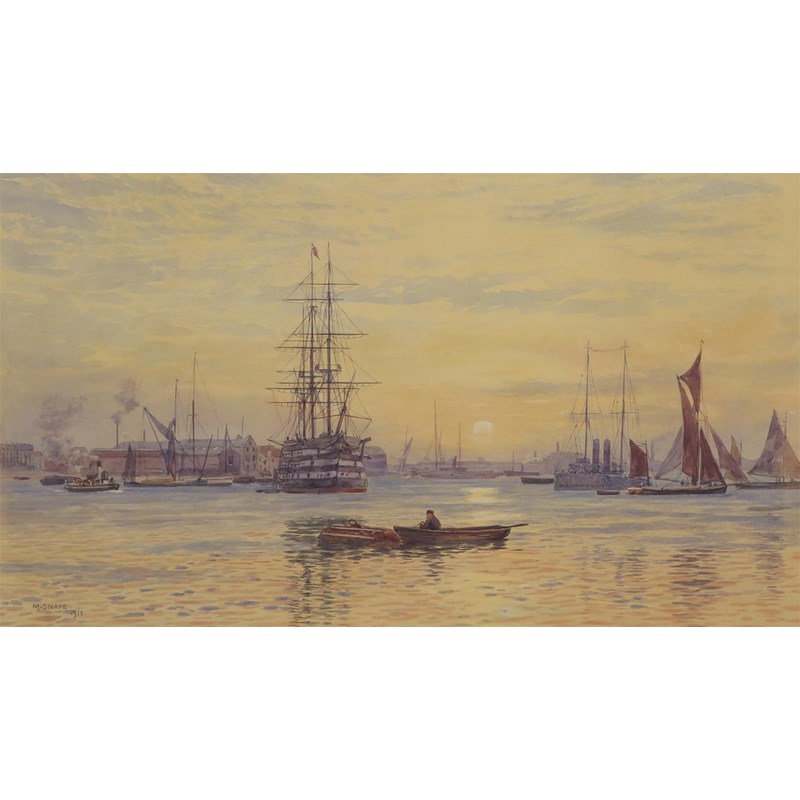 Martin Snape (1852-1930) Gosport from Portsmouth Harbour Signed and dated 1910 Watercolour 27 x...