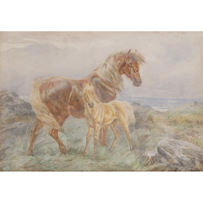 Basil Bradley (1842-1904) Retrievers at work; A pony and foal on the coast A pair