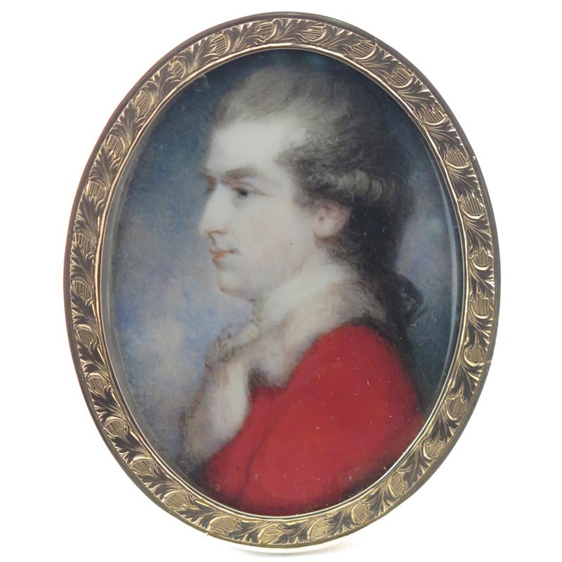 Portrait miniature of John Frederick Sackville, 3rd Duke of Dorset, head and shoulders in profile, wearing a red coat with fur collar