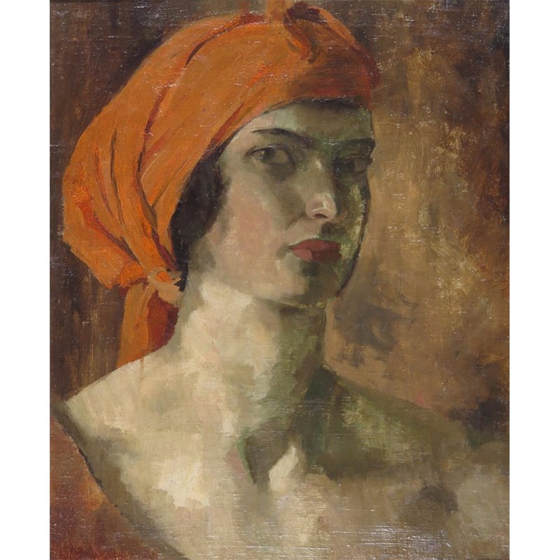 Circle of Bernard Meninsky Head of girl wearing an orange headscarf Oil on canvas 51 x 41cm; 20 x...