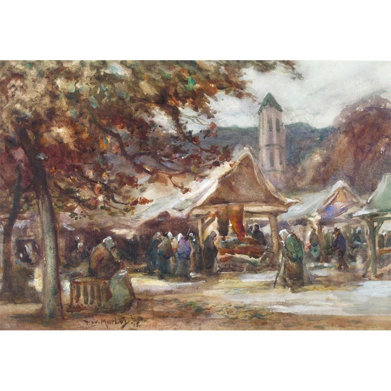 Thomas William Morley (1859-1925) Breton market Signed and dated 15 Watercolour 28 x 42cm; 11 x...