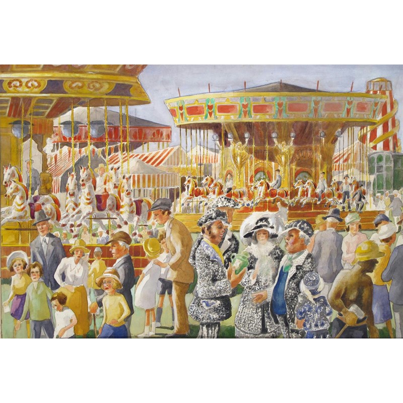 English School mid 20th Century Pearly kings and queen at the Fairground Watercolour over pencil