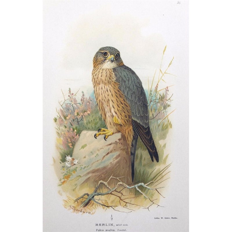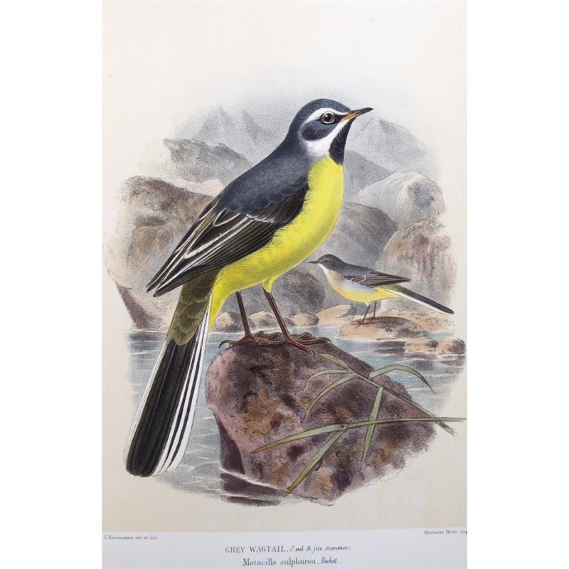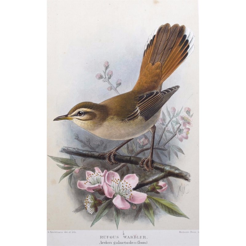 Lilford (Thomas L. Powys, 4th Baron). Coloured Figures of the Birds of the British Isles, London 1885-97, 7 vols., 8vo, contemporary half morocco, with photogravure portrait and 421 plates, bookplate of Robert Hargreaves, some foxing but plates generally in excellent condition and numbered in pencil, minor scuffing to the spines, plate 62 in vol. VI (Bulmers Petrel) is absent with a repeat of Sooty Shearwater in its place; and Notes on the Birds of Northamptonshire, London 1895, 2 vols., 8vo, contemporary half morocco, folding map and 37 (of 67) plates, bookplate of Robert Hargreaves, some foxing but plates generally in excellent condition and numbered in pencil, minor scuffing to the spines. (9)