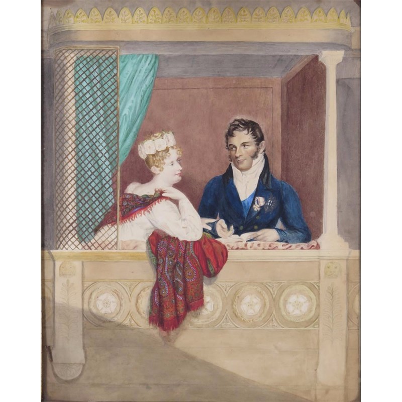 Princess Charlotte Augusta of Wales and Prince Leopold of Saxe Cobourg Gotha in their box at Covent Garden