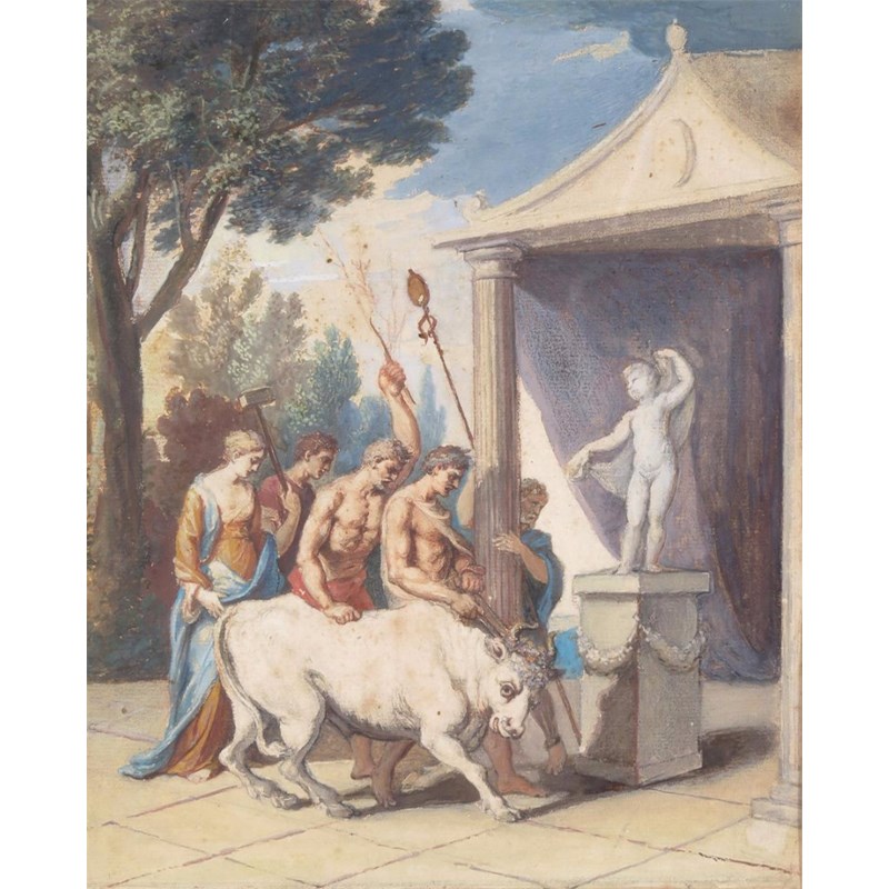 Attributed to Elisabeth Sophie Cheron (French 1648-1711) A Classical sacrifice Watercolour and...