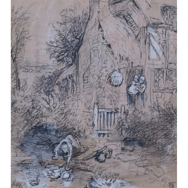 Myles Birket Foster R.W.S (1825-1899) Figures by country cottages A pair