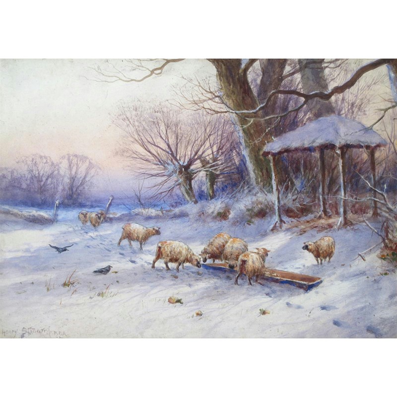 Henry Stannard (1844-1920) Sheep feeding at dusk Signed Watercolour over pencil 34 x 47.5cm; 13½...