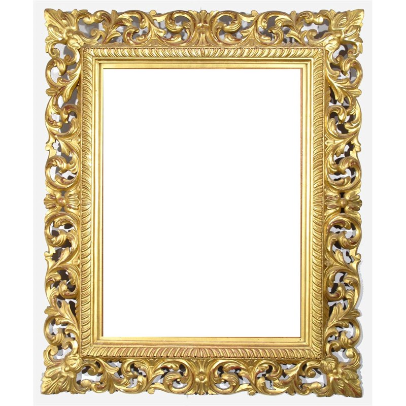 A carved and pierced Florentine style giltwood frame with glass, 62 x 46cm; 24½ x 18in (rebate size)