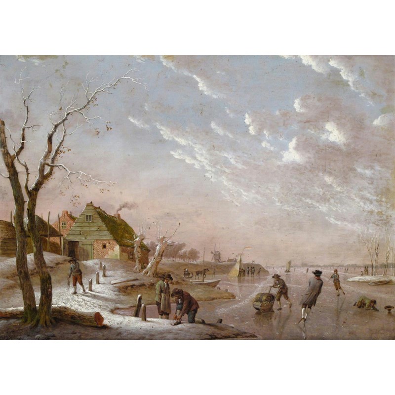 Hendrik Willem Schweickardt (German 1746-1797) Winter scene with skaters on a lake Signed Oil on...