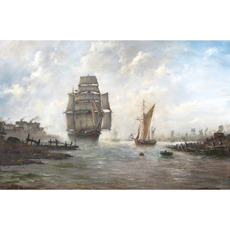 English School (20th Century) Sailing ships on an estuary Signed indistinctly