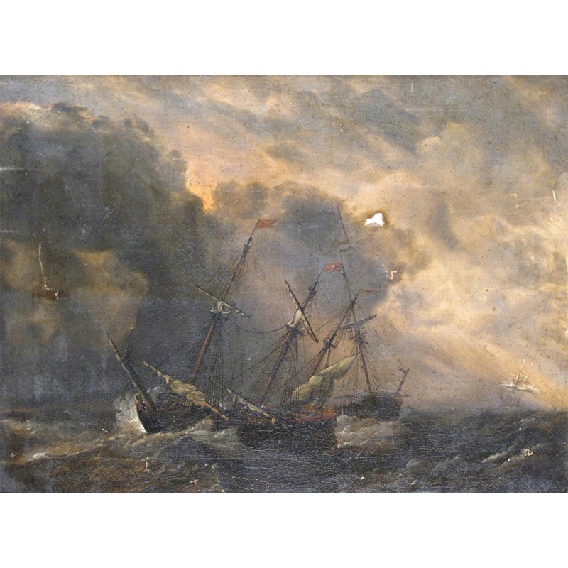 Dutch School (19th Century) Ships in a stormy sea Oil on canvas 45.5 x 61cm; 18 x 24in