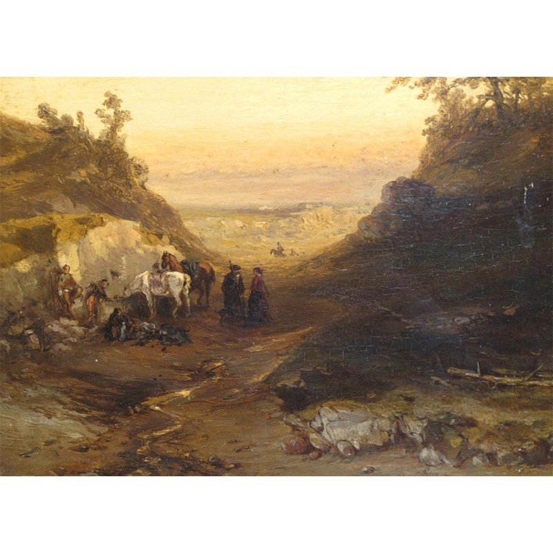 Charles Rochussen (Dutch 1814-1894) Travellers resting by a track Signed with initials Oil on...
