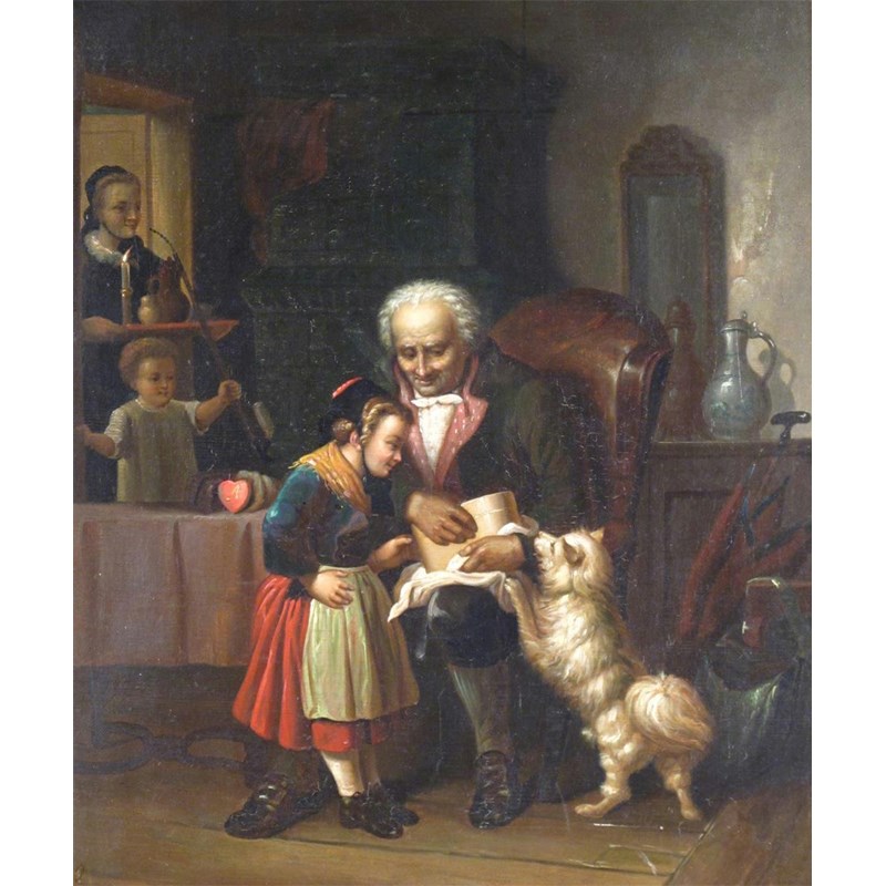 German School 19th Century A family in an interior Oil on canvas in a gilt frame 45.5 x 37cm; 18...