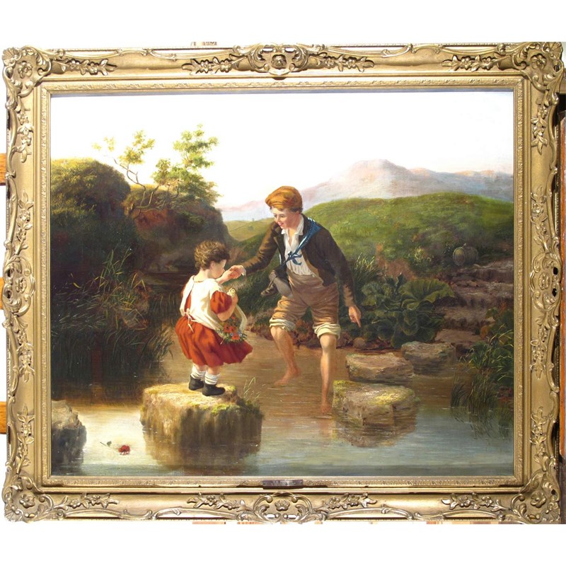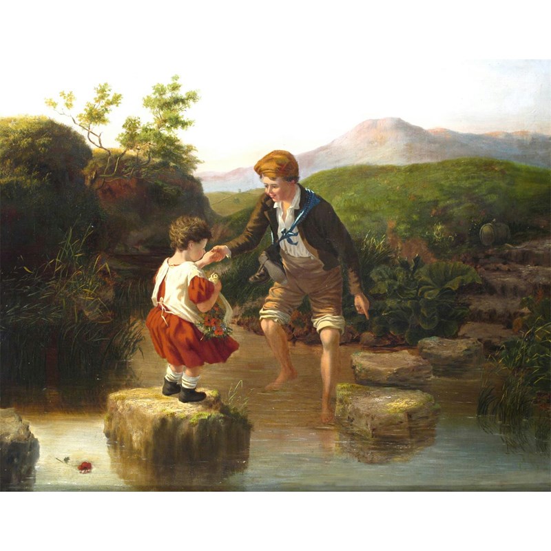 English School 19th Century A Helping Hand Signed with initials H.W. Oil on canvas 64 x 76cm; 25...