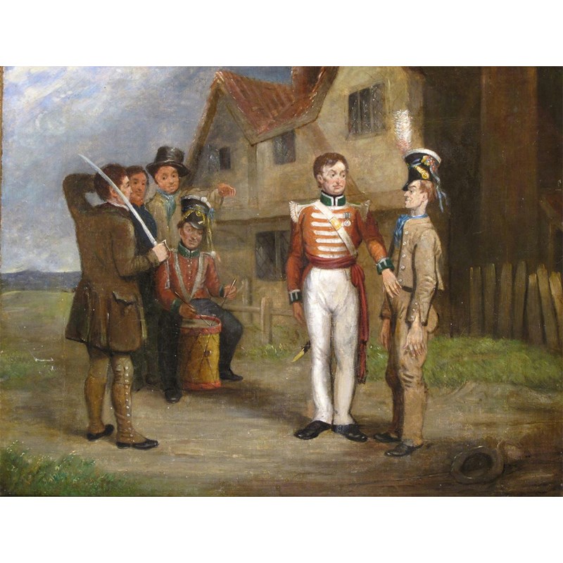 English School early 19th Century Soldiers selecting recruits Oil on canvas 35 x 45cm; 13¾ x 17¼in