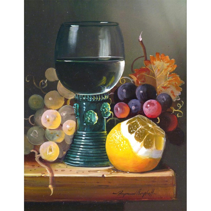 ‡Raymond Campbell (b.1956) Still life of fruit and a rummer Signed Oil on board 25.5 x 20.5cm; 10...