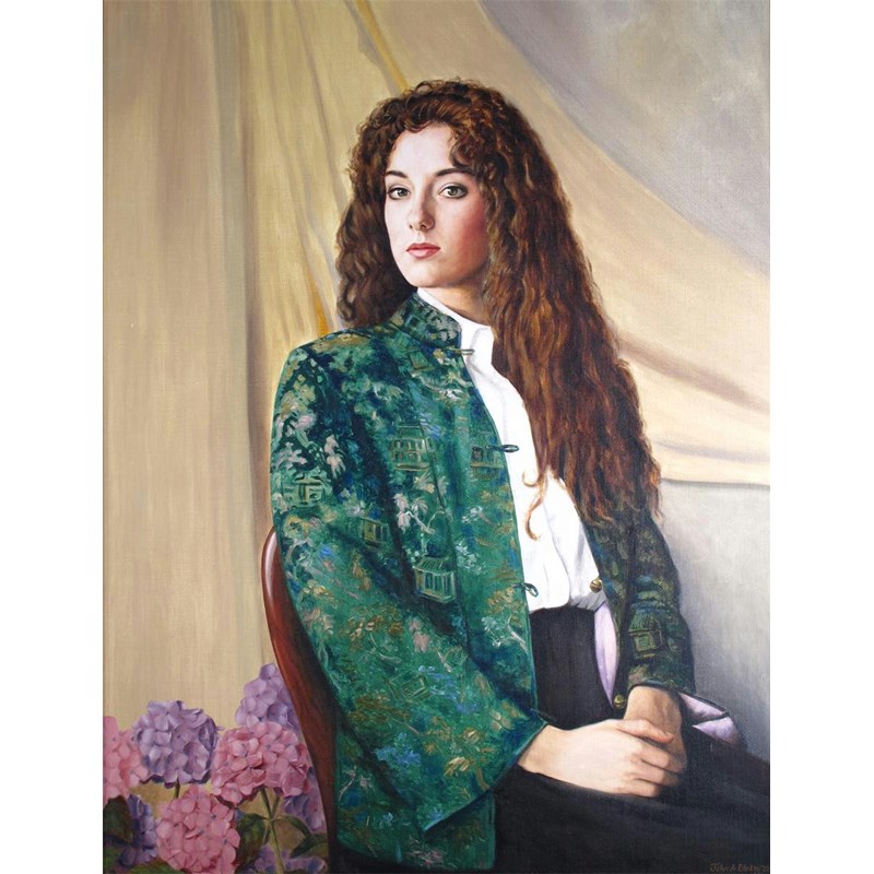 ‡John A. Blakey (b.1952) Portrait of a young lady in a Chinese jacket Signed and dated '88 Oil on...