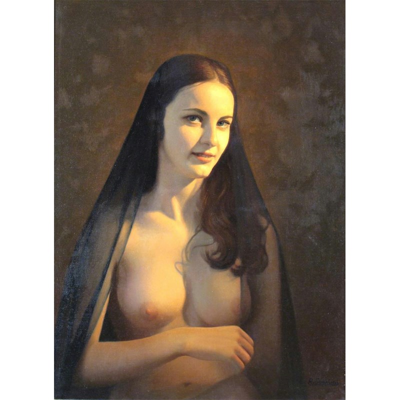 Reza Samimi (Persian 1919-1991) Buste nu au voile noir Signed Oil on canvas 74 x 54.5cm; 29 x...