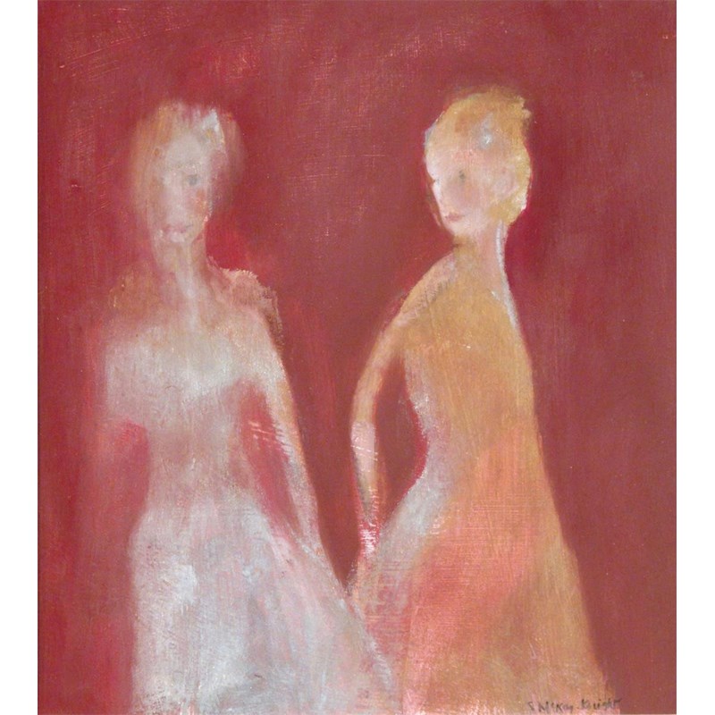 ‡Sophie McKay Knight (Scottish b.1973) Two girls Signed Oil on board 21 x 19cm; 8¼ x 7½in