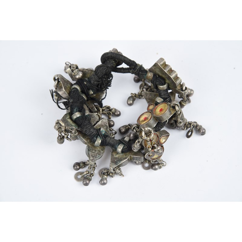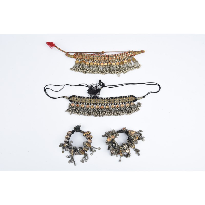 a similar choker, and two bracelets, one with red dots. (4)