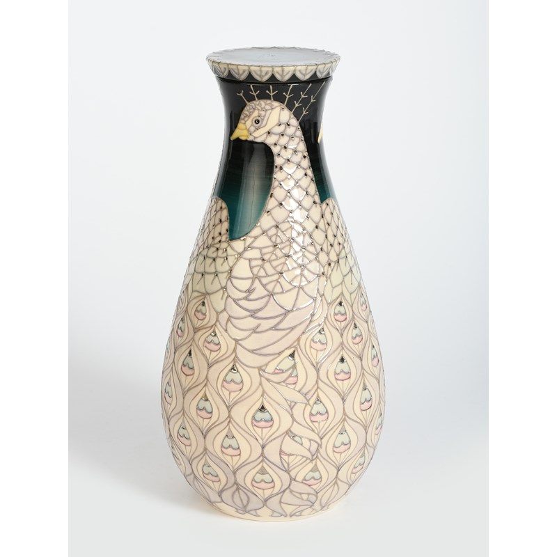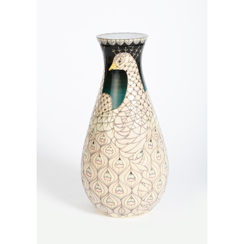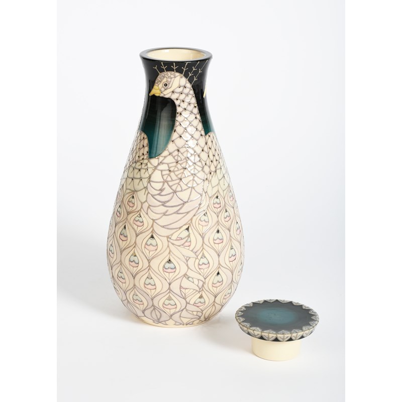 'Peacock' a Dennis China Works trial vase and cover designed by Sally Tuffin