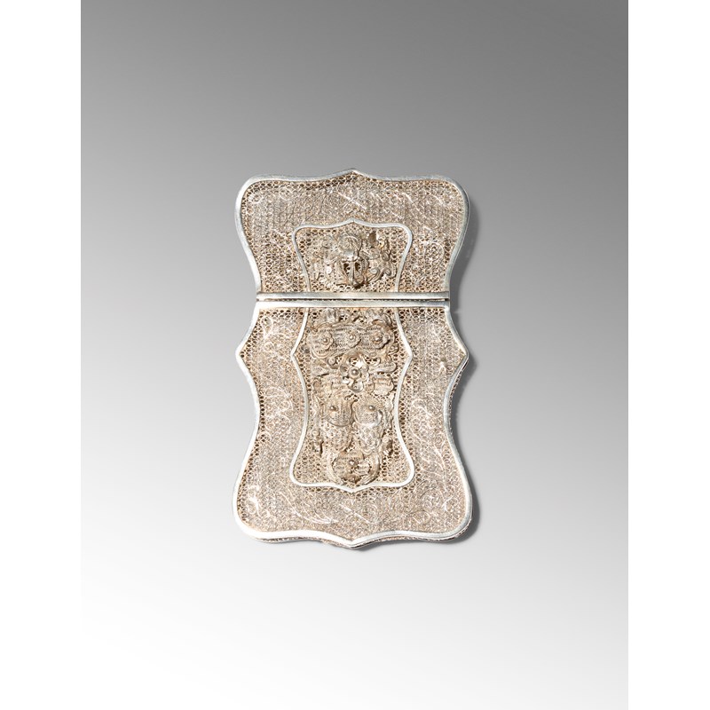 A CHINESE SILVER FILIGREE CARD CASE