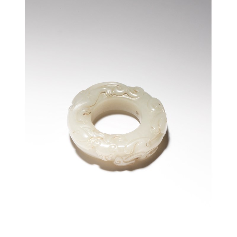 A CHINESE PALE CELADON JADE 'CHILONG' HUAN