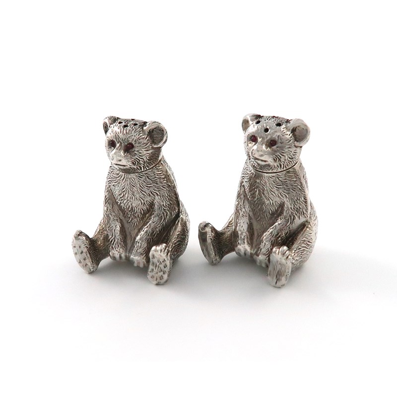 A matched pair of Edwardian novelty silver bear pepper pots,