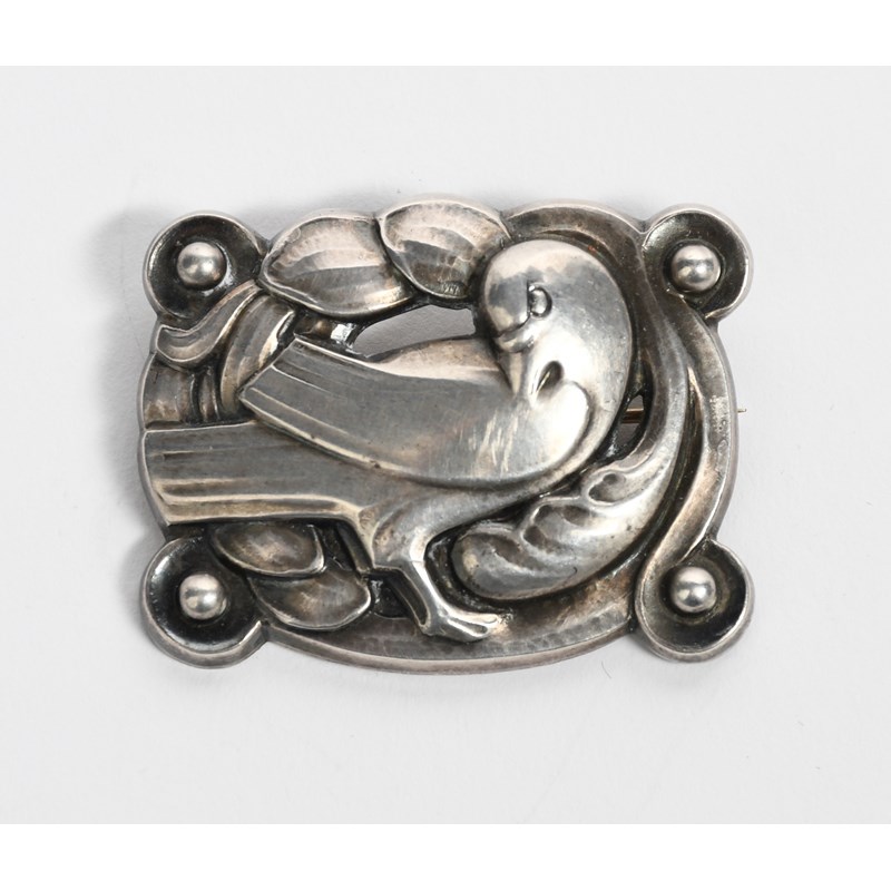 A Georg Jensen silver brooch designed by Arno Malinowski, model no 204, cast in low relief with a bird amongst foliage stamped marks, 4cm. wide.