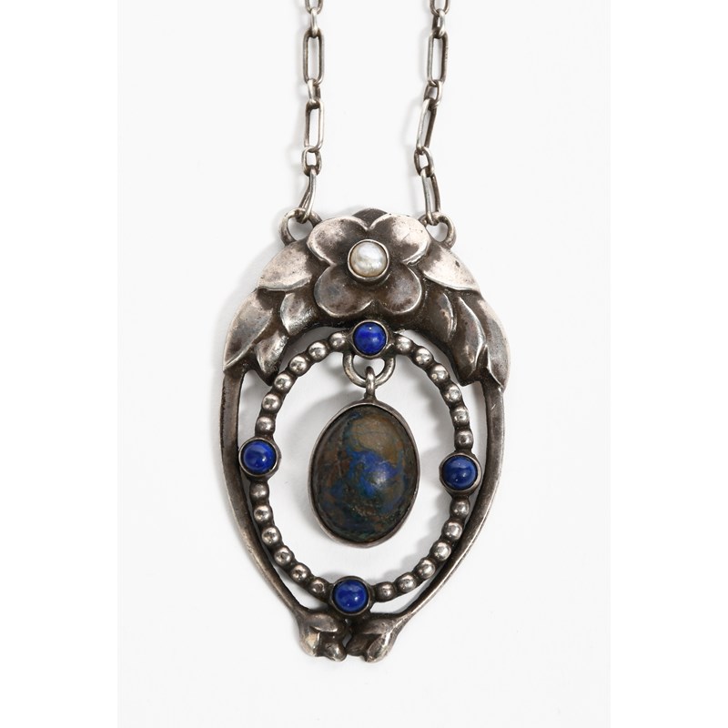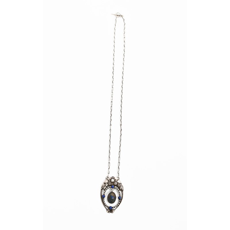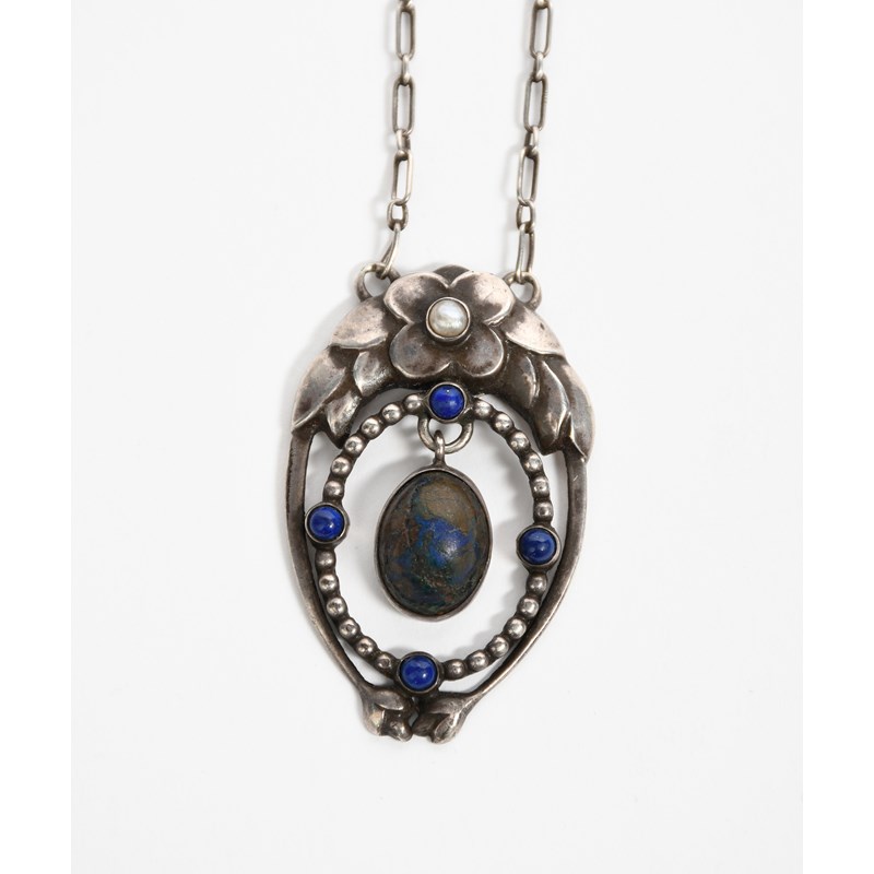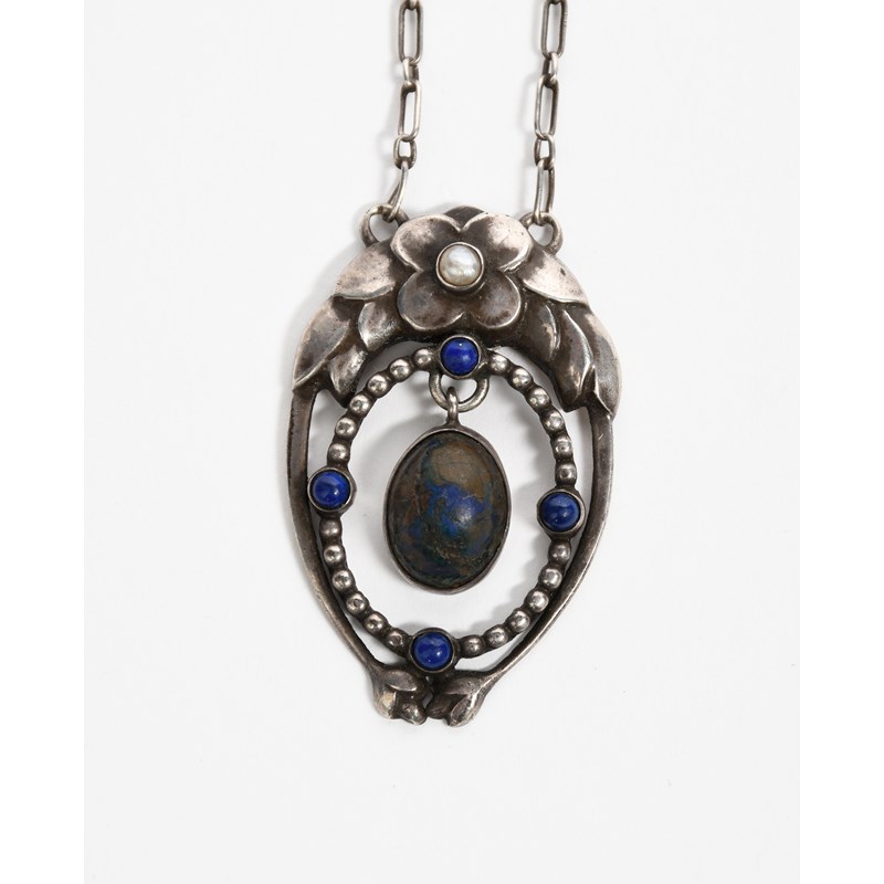 A Georg Jensen silver and lapis pendant necklace designed by Georg Jensen