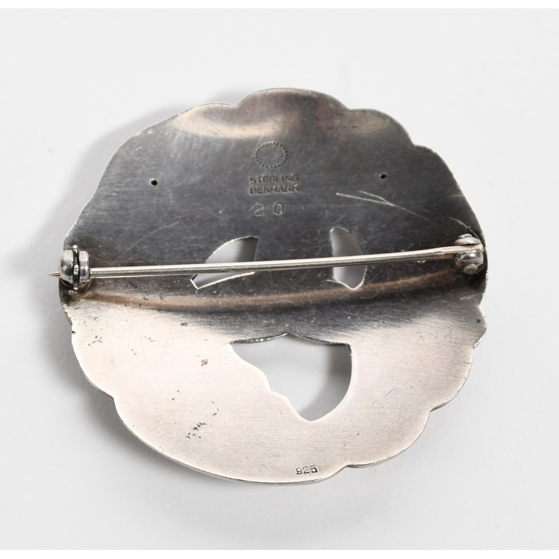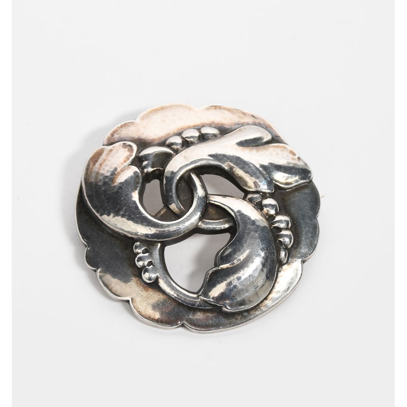 A Georg Jensen silver brooch designed by Georg Jensen, model no.20, circular, pierced and cast in low relief with radiating foliage and berries, stamped marks, 4.5cm. diam.