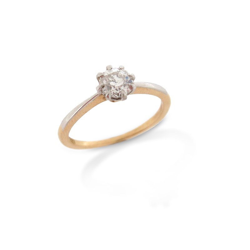 A diamond solitaire ring, the old circular-cut diamond weighs approximately 0.50cts, set in platinum and yellow gold, size N 1/2