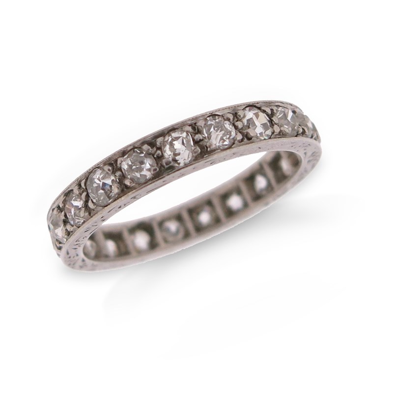 An early 20th century diamond full circle eternity ring, set with old circular-cut diamonds in platinum, size K 1/2