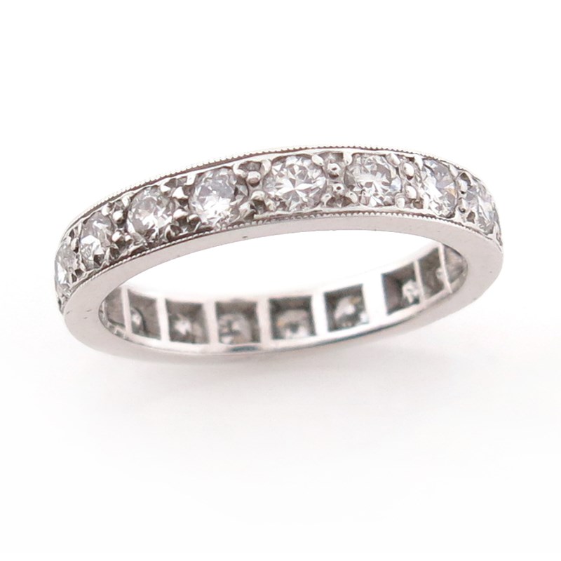An early 20th century diamond full circle eternity ring, set with old circular-cut diamonds in white gold, size N