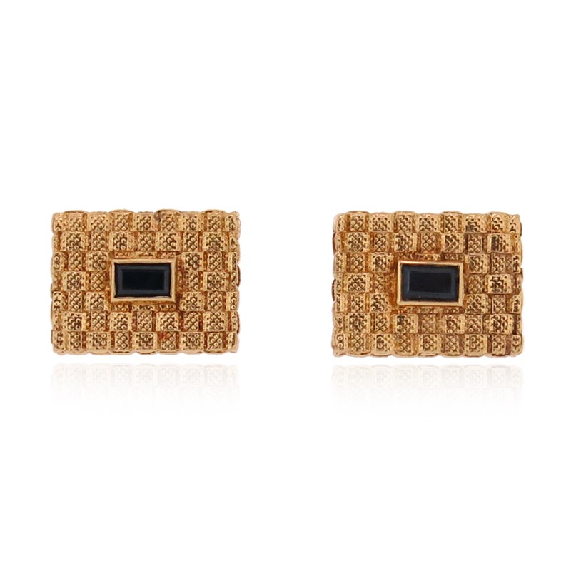A pair of French sapphire and gold cufflinks by Lasbleitz Fourniere Vitello