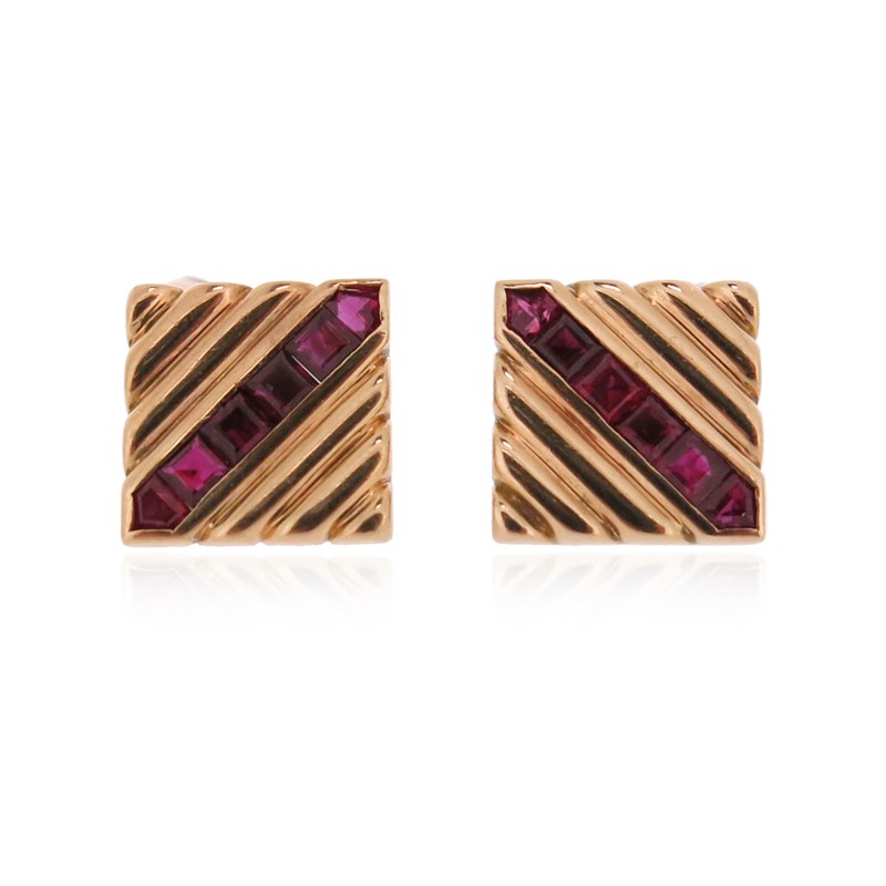 A pair of ruby-set gold cufflinks by Paul Flato