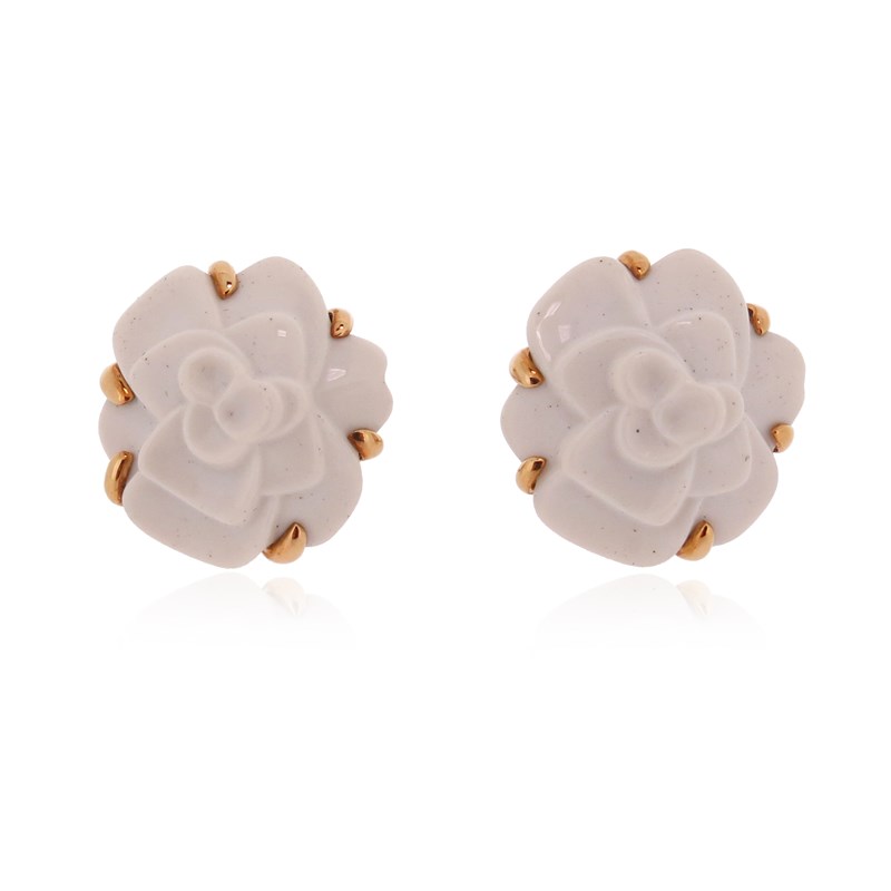 A pair of ceramic flowerhead earrings by Chanel, mounted in 18ct yellow gold, signed and with inventory number 6F308. 2.5cm wide
