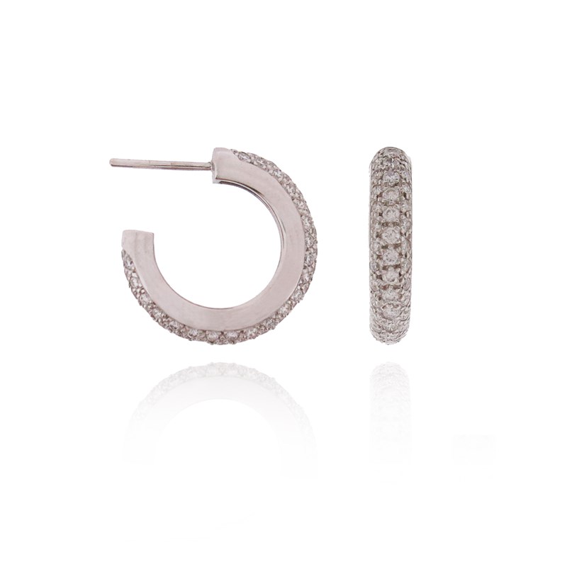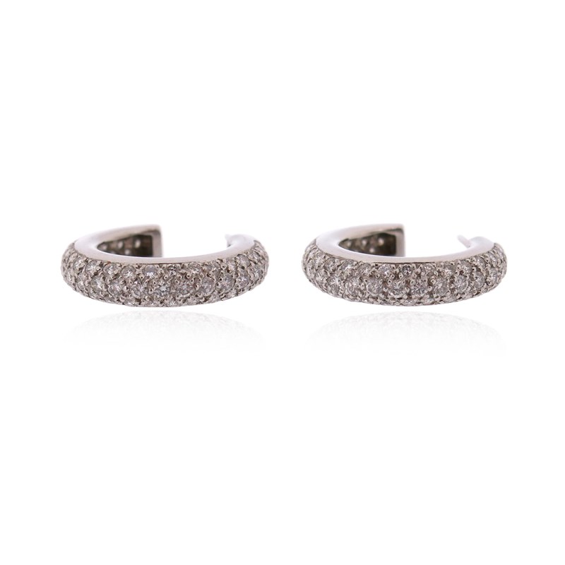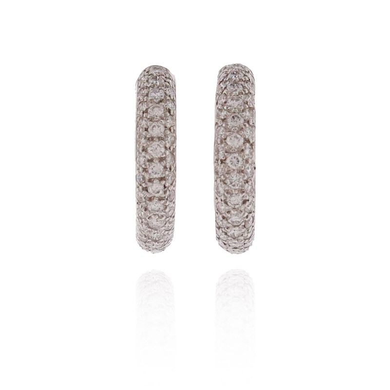 A pair of diamond hoop earrings, pave-set with round brilliant-cut diamonds weighing approximately 2.80cts, in 18ct white gold, London hallmarks, 2cm high, post fittings