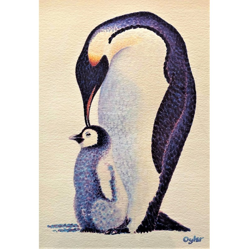 Sally Oyler travels widely, drawing inspiration from a variety of subjects and encounters, with amazing wildlife being the closest to her heart. One of her most inspiring journeys took her to see the Emperor penguins at their rookery on Snow Hill Island on the Antarctic peninsula. The Emperors, and especially their young chicks, were as inquisitive of her as she was of them.