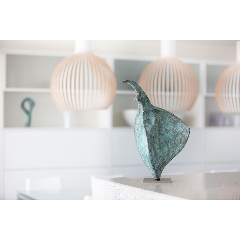 Ben's joyous sculptural forms and shapes flow out of his approach to life and the things he sees and experiences around him. He has experienced first-hand the drama of the Atlantic Ocean and the waves that crash against the beach, the experience of sailing on it and surfing through it, the joy of encountering the species that call it home.