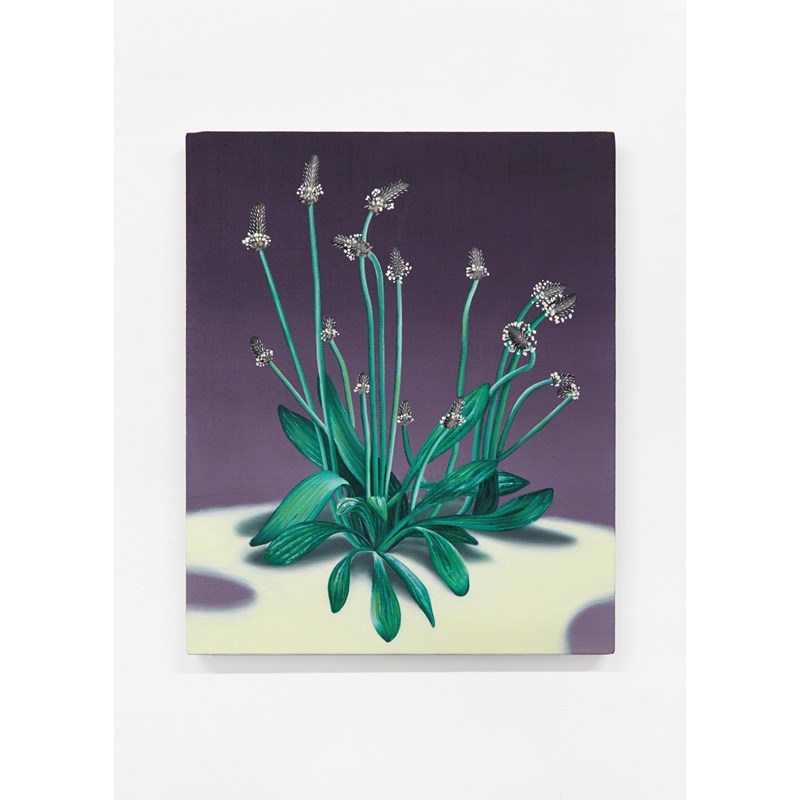 Her recent paintings from 'The Witch's Garden' series feature dreamlike plants. The plants act as possible ingredients for potions or spells and explore the ways we attempt to treat and control our bodies and minds. The works consider desire and magical thinking, referencing herbal fertility guides and ancient spell books.