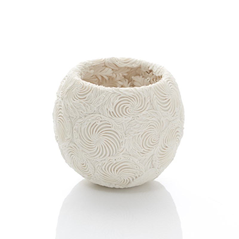 Moulded, carved and hand-built porcelain with an interior of dancing sprigs, 2020